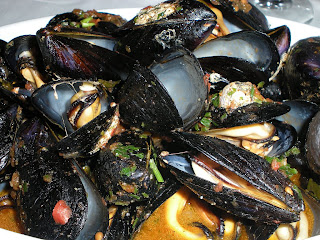 Acomodar las rebanadas de pan en los platos y servir los mejillones en cada plato con su jugo para que el pan absorba todo el jugo.